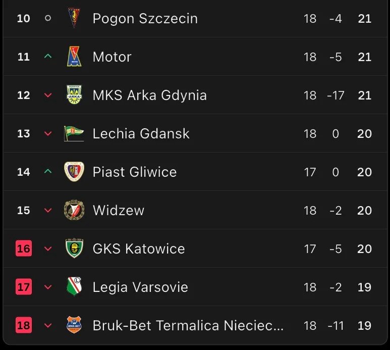 In the Polish first division, only eleven points separate the leader, Wisła Płock, from the last place, Bruk-Bet Termalica Nieciecza.