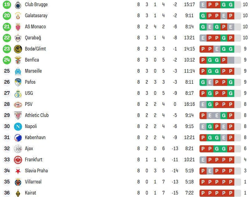 And, on the other hand, there is the tough disappointment for Napoli after losing at home to Chelsea, as well as for Athletic Club after losing at San Mamés against Sporting CP.