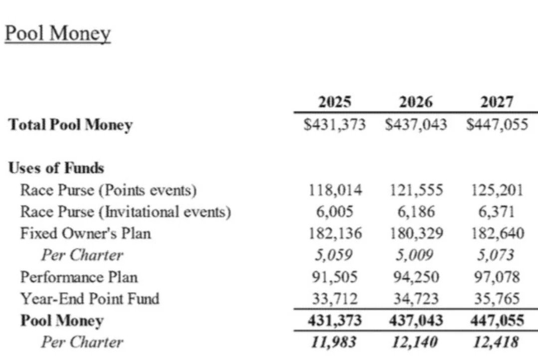 A charter’s rolling 2-year Owner Points shares are divided by the total number of outstanding shares to determine the percentage of total Performance Plan money to be paid out to the Charter in the following season