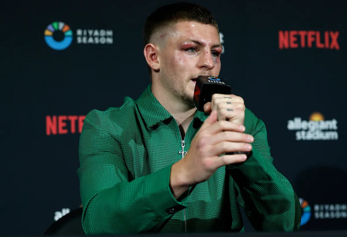 Callum Walsh speaks to the media during a press conference following his junior middleweight win over Fernando Vargas Jr. during Netflix’s Canelo vs. Crawford Fight Night at Allegiant Stadium on Sept. 13, 2025, in Las Vegas.