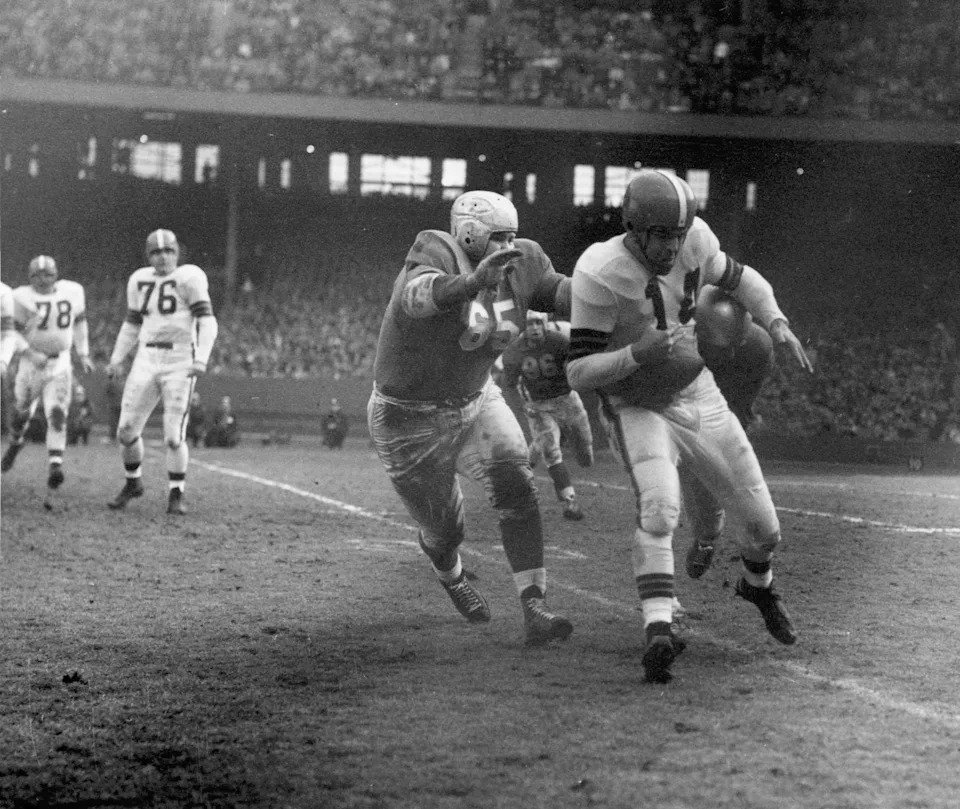 He had been voted league MVP five times and been named First and Second Team All-Pro six different years so there wasn’t much left to prove. A lot of his teammates from the early championship days had retired or were close. In the 1954 championship game, he became the first player to throw for three TDs and run for three TDs in a single game. (Josh Allen would later tie this in 2024).