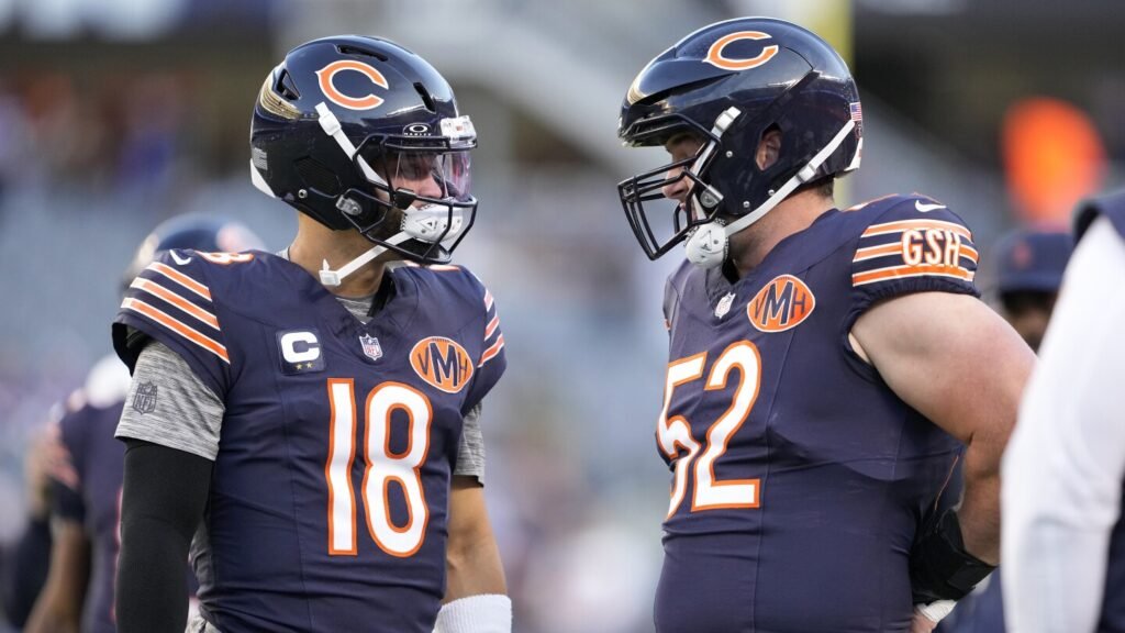 Williams went 6-of-6 for 51 yards, including a 17-yard throw on the run to Rome Odunze. Running backs D’Andre Swift and Kyle Monangai each had an 11-yard reception.