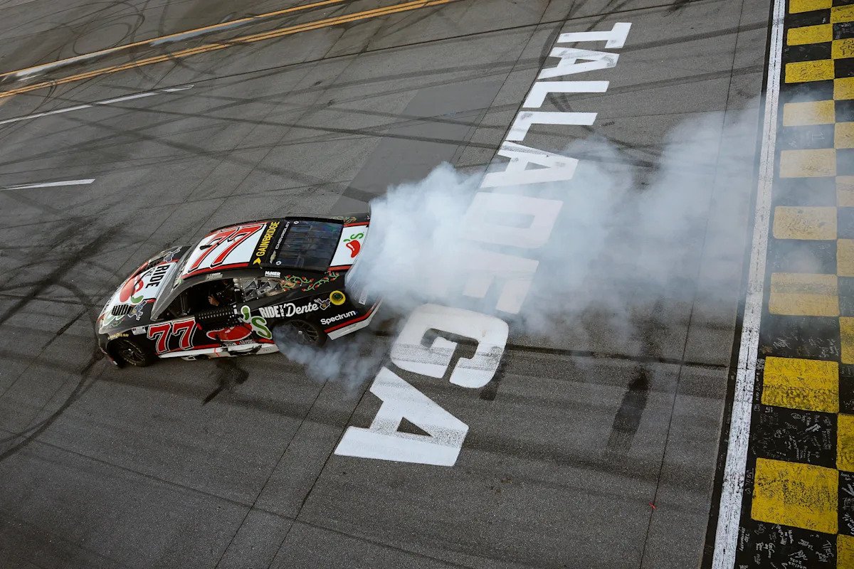 After the event, Hocevar drove his No. 77 car the opposite direction while sitting outside of the vehicle. It was one of the most memorable NASCAR celebrations in recent memory. The Spire Motorsports driver has been knocking on the door, and he finally broke through at Talladega on Sunday evening.