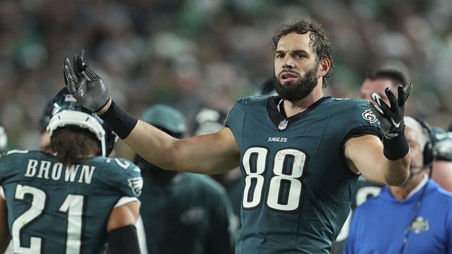 Tight end Dallas Goedert was on the field for the Eagles when they beat the Chiefs in Super Bowl LIX in February, but there’s doubt about his availability for this Sunday’s game between the teams.