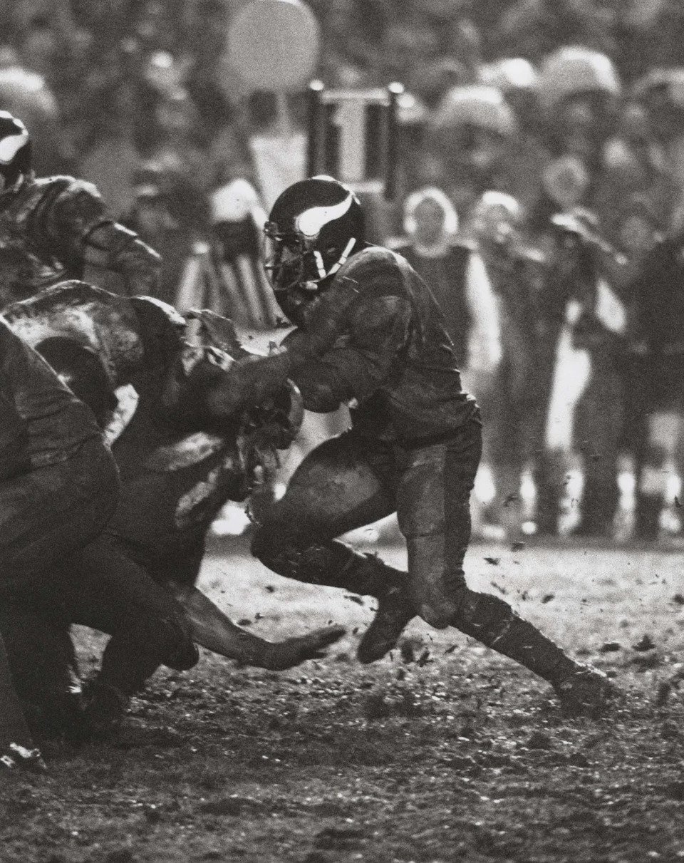 Dec. 26, 1977: Minnesota Vikings running back Chuck Foreman (44) in action against the Los Angeles Rams during the 1977 NFC divisional playoff Game at L.A. Memorial Coliseum. The rain-soaked playoff game in Los Angeles that would become known as the “Mud Bowl.” The Vikings won the game, 14-7.