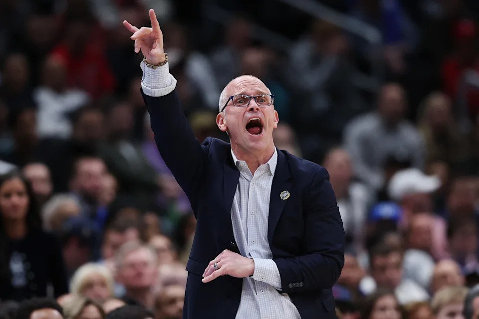 WASHINGTON, DC – MARCH 27: Head coach Dan Hurley of the UConn Huskies looks on during the first half against the Michigan State Spartans in the Sweet Sixteen of the 2026 NCAA Men’s Basketball Tournament at Capital One Arena on March 27, 2026 in Washington, DC. (Photo by Patrick Smith/Getty Images)