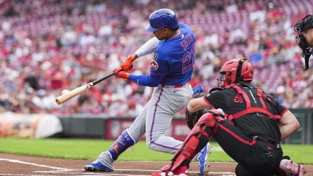 -New York got out to an early lead against Cincinnati starter Andrew Abbott, scoring three times in the first inning thanks to some soft hits and heads up baserunning. Francisco Lindor began the inning with a walk and Juan Soto stayed scorching hot with a single to put runners at the corners. After Pete Alonso struck out, Mark Vientos nubbed one down the third base line that stayed fair and scored the game's first run.