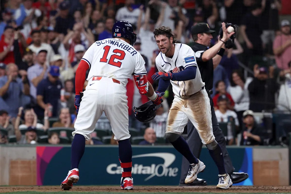 Clement moved to third base on a Pete Crow-Armstrong double, then scored the USA’s tying run with gutsy baserunning when he slid home on a wild pitch. The door blasted off its hinges.