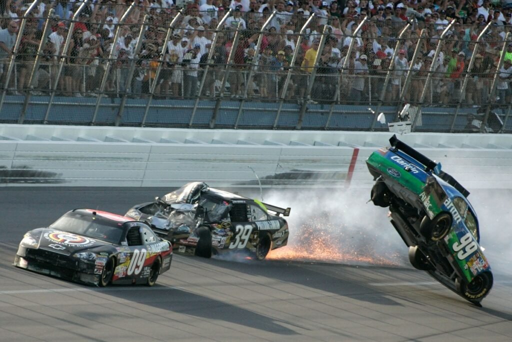 How he won: In one of the wildest finishes in Talladega history, the 2009 spring race featured tandem drafting, where pairs of cars hooked together were running far faster than a large pack ever could. At the end, Keselowski, who was only a part-time driver, making a start with James Finch’s team. They had never won before, but he was second, pushing Carl Edwards on the final lap. With the pair of Ryan Newman and Dale Earnhardt Jr. close behind, Keselowski made his move, but Edwards blocked. Keselowski did not back down, sending Edwards spinning. his car lifted off the ground and flew skyward after getting run into by Newman, slamming upside down into the catch-fence. Keselowski won the race, and Edwards jogged across from the finish line after climbing from the wreckage.