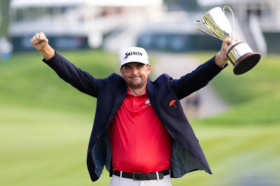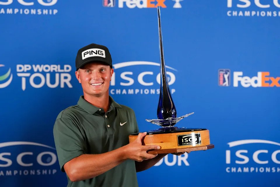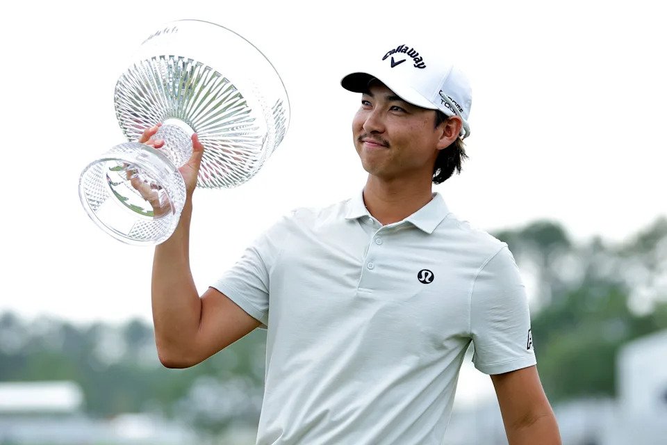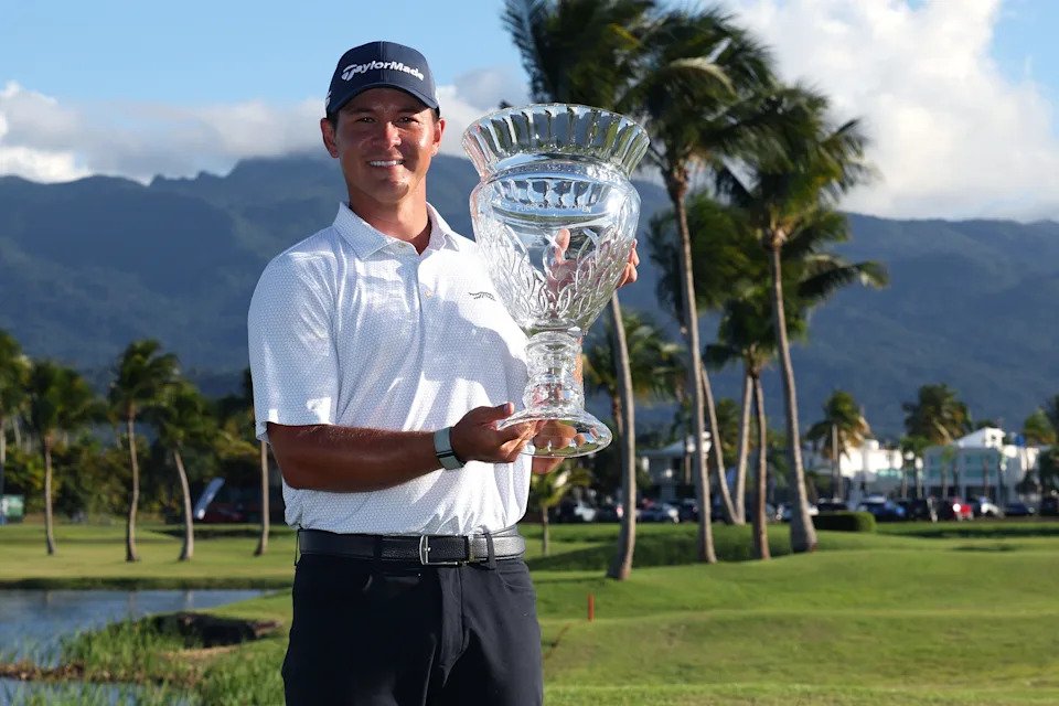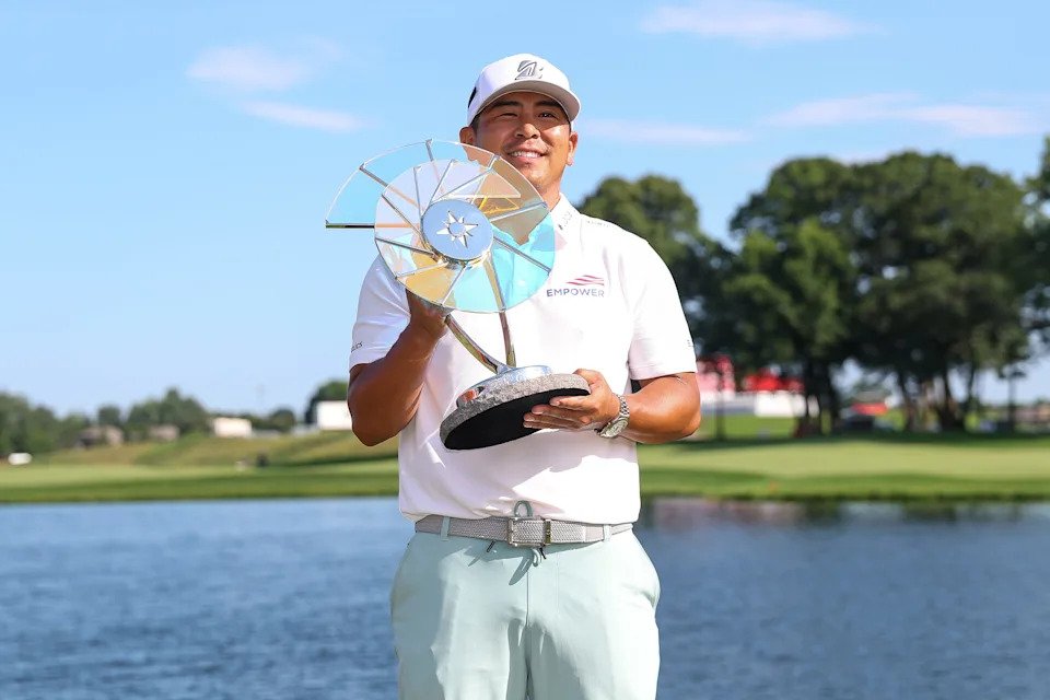July 27: Kurt Kitayama celebrates with the trophy after winning the 3M Open at TPC Twin Cities.