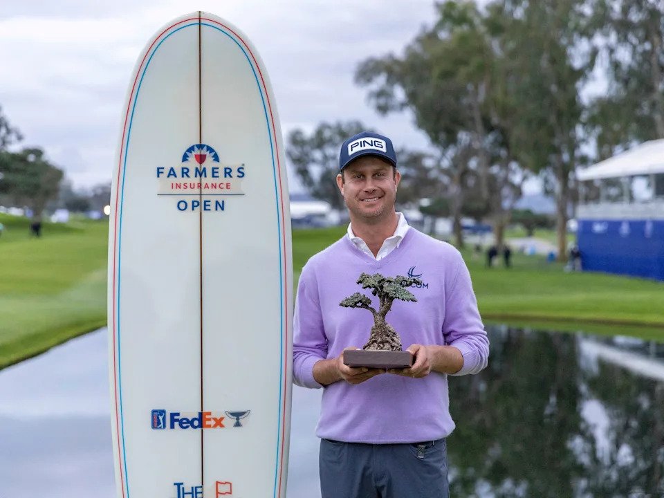 Jan. 25: Harris English celebrates after winning the Farmers Insurance Open at Torrey Pines Municipal Golf Course (South Course) in San Diego.