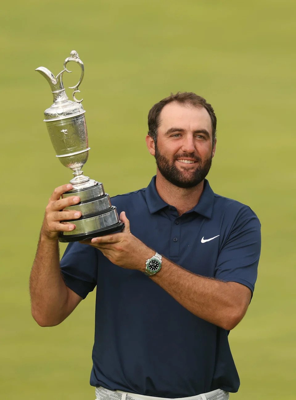 July 20: Scottie Scheffler celebrates with the Claret Jug after winning the 153rd Open Championship at Royal Portrush.