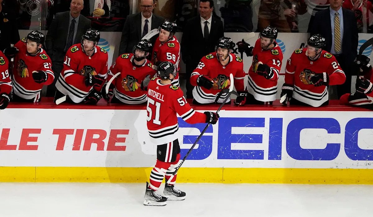 Mitchell was selected by the Blackhawks with the 57th overall pick of the 2017 NHL Entry Draft. In 82 games over three seasons with the Blackhawks from 2020-21 to 2022-23, he had four goals, 12 assists, 16 points, 44 hits, and 119 blocks.
