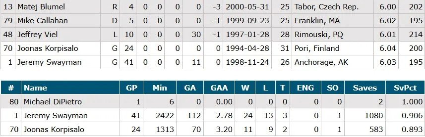 Goalies: Joona Korpisalo (Jeremy Swayman played yesterday)