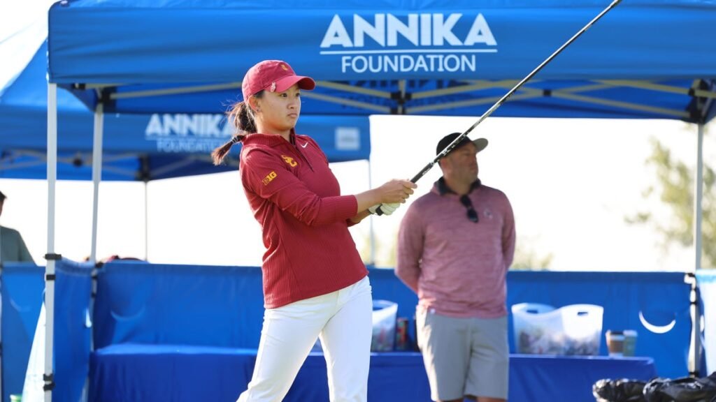 USC is tied with Wake Forest on top of the leaderboard. The Demon Deacons, the 2022 champions at the Annika Intercollegiate, shot 7 under as a team and are at 1 under overall, with them and USC five ahead of third-place Texas, which finished with the best team round of the day at 9 under.