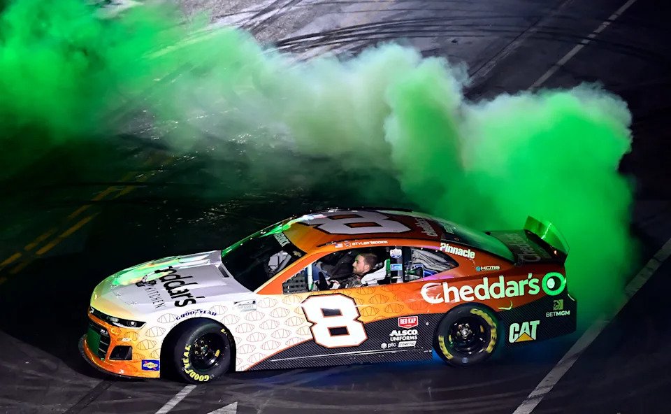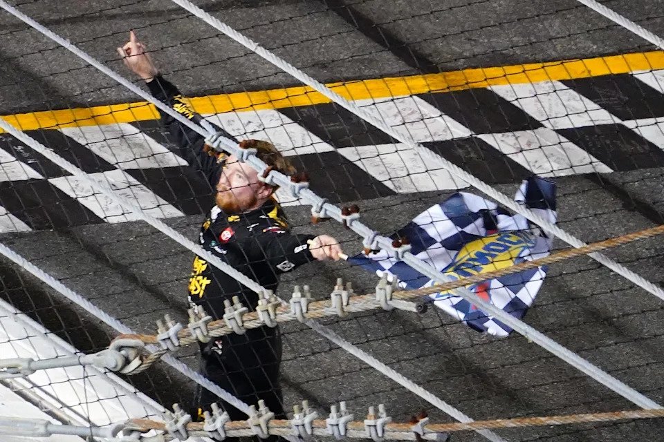 Sept. 10: Tyler Reddick celebrates winning the NASCAR Cup Series Hollywood Casino 400 at Kansas Speedway.