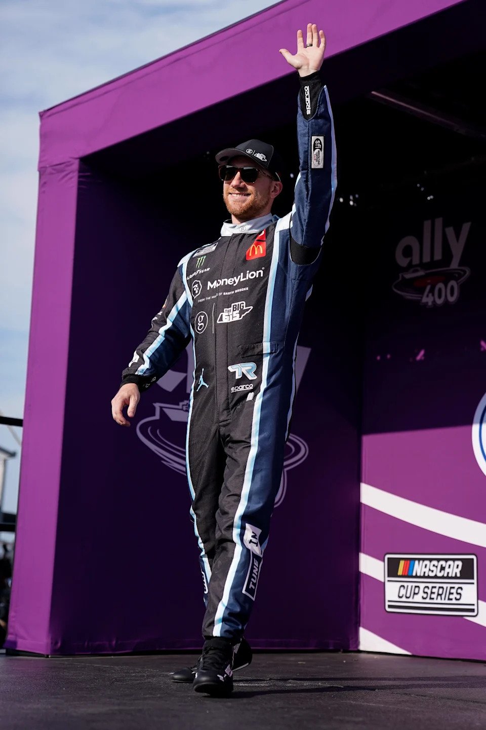 DARLINGTON, SOUTH CAROLINA – APRIL 06: Tyler Reddick, driver of the #45 McDonald’s Toyota, waves to fans as he walks onstage during driver intros prior to the NASCAR Cup Series Goodyear 400 at Darlington Raceway on April 06, 2025 in Darlington, South Carolina. (Photo by James Gilbert/Getty Images)