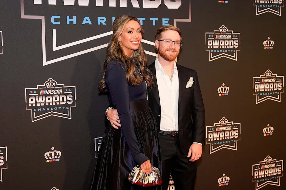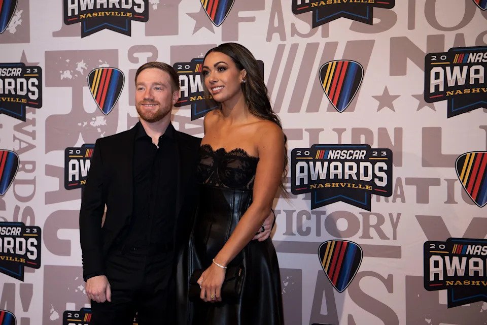 Nov 22, 2024; Charlotte, NC, USA; NASCAR Cup Series driver Tyler Reddick (45) and his wife Alexa during the NASCAR Awards Banquet at Charlotte Convention Center. Mandatory Credit: Jim Dedmon-Imagn Images