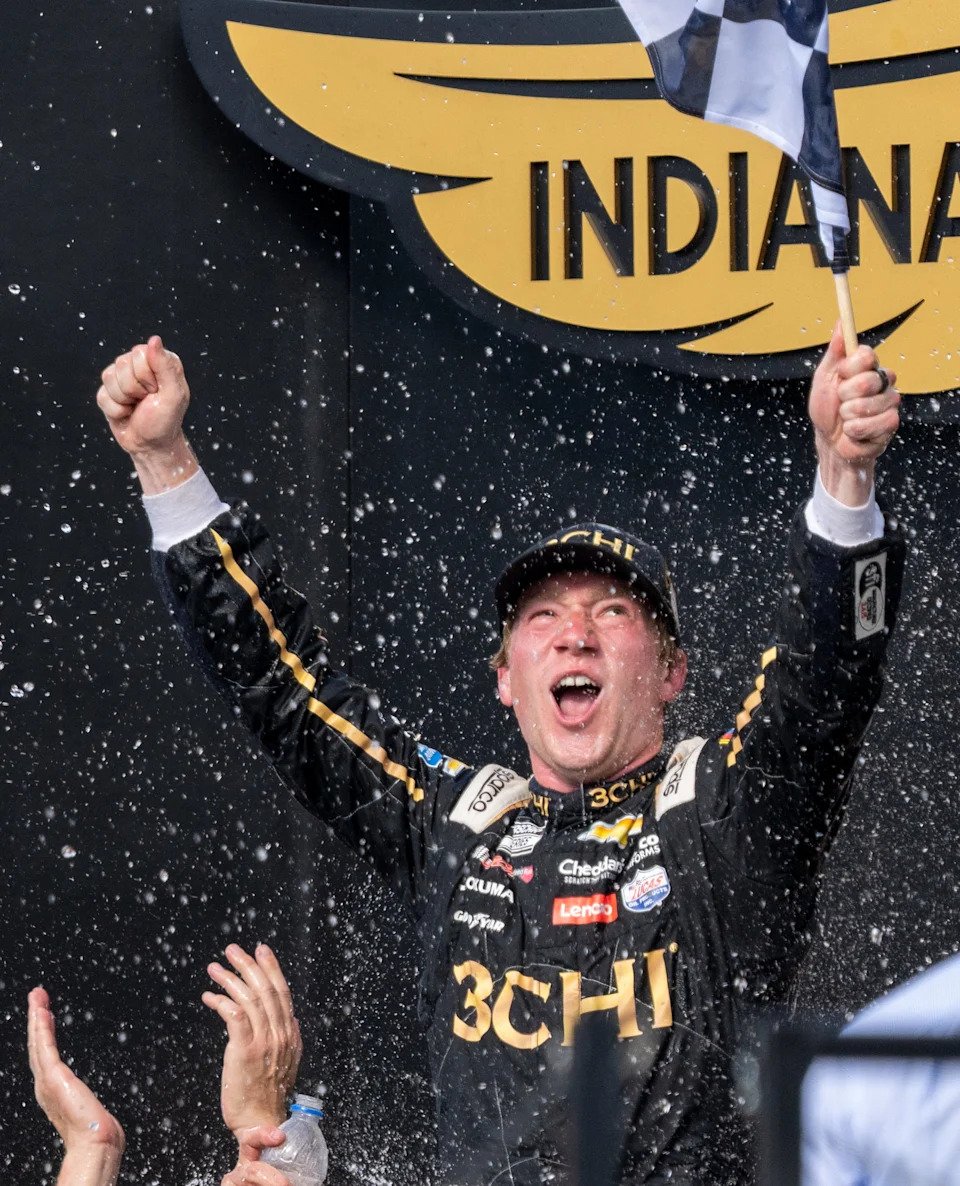 NASCAR Cup Series driver Tyler Reddick (8) after winning the Verizon 200 at the Brickyard, Indianapolis Motor Speedway, Sunday, July 31, 2022.