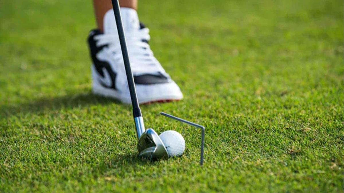 Setting up the Swingzy is simple. The package comes with three L-shaped plastic pieces that can be pushed into grass or turf, with one side of the L positioned over the ball. The goal is to make normal swings without hitting the Swingzy. But even if you do, the Swingzy won’t hurt your clubs.