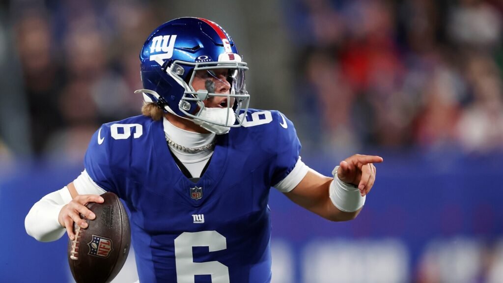 Only 4:22 after he ran for a 20-yard touchdown, Dart threw a 35-yard touchdown to WanDale Robinson. Giants kicker Jude McAtamney missed the extra point, leaving the Giants with a 13-3 lead.
