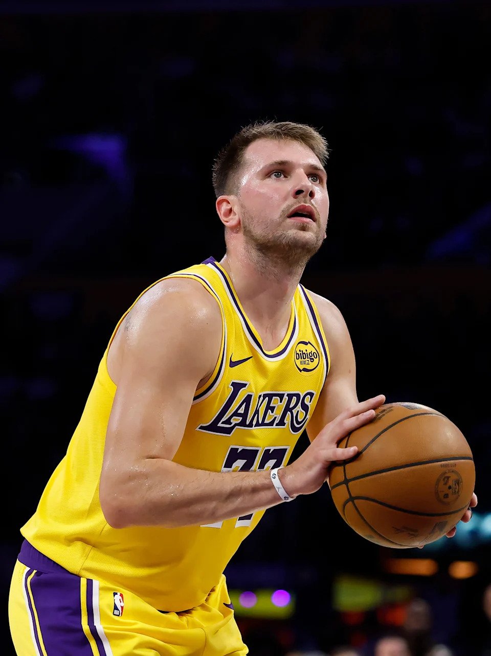 Luka Doncic #77 of the Los Angeles Lakers during a free throw against the Minnesota Timberwolves at Crypto.com Arena on October 24, 2025 in Los Angeles, California.