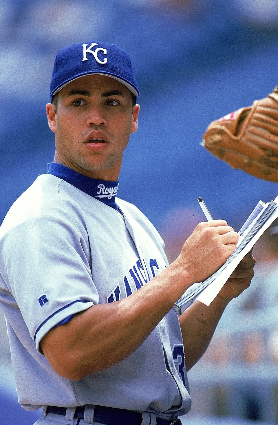 Carlos Beltran of the Kansas Royals signs a fans program before the game against the Chicago White Sox at Comiskey Park in Chicago on July 8, 1999. Beltran began his career with the Royals in 1999.