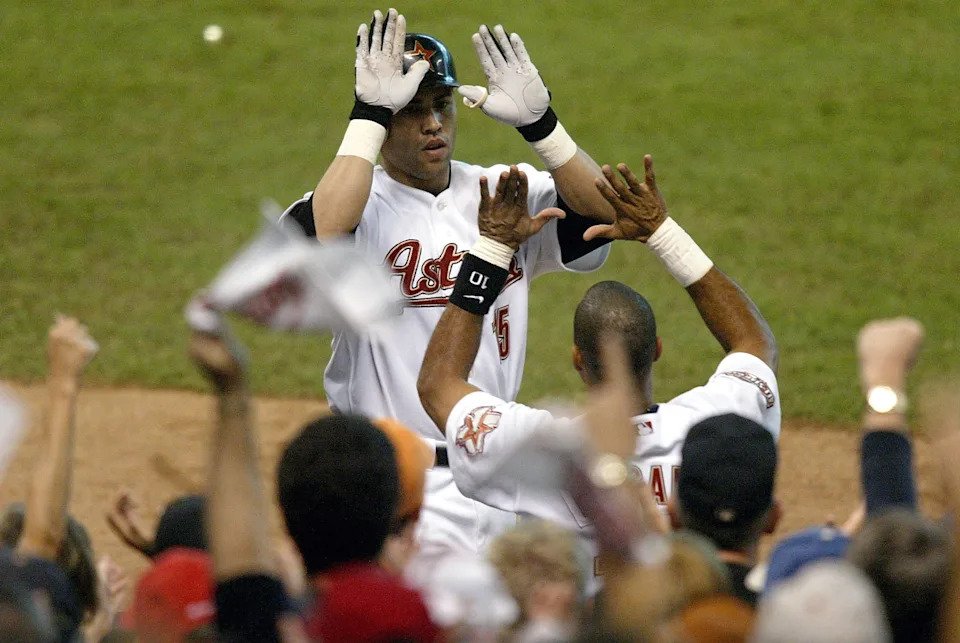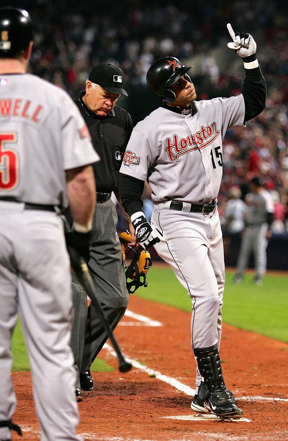 Carlos Beltran H celebrates after hitting a solo home run in the top of the ninth inning in Game 3 of the 2004 NLCS.