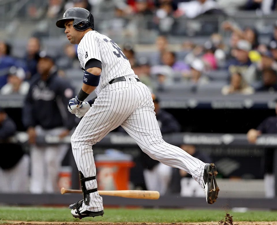 Carlos Beltran heads for first after he hit his 400th career home run in the seventh inning against the Chicago White Sox at Yankee Stadium on May 15, 2016 in the Bronx. Beltran would end his career with 435 home runs.