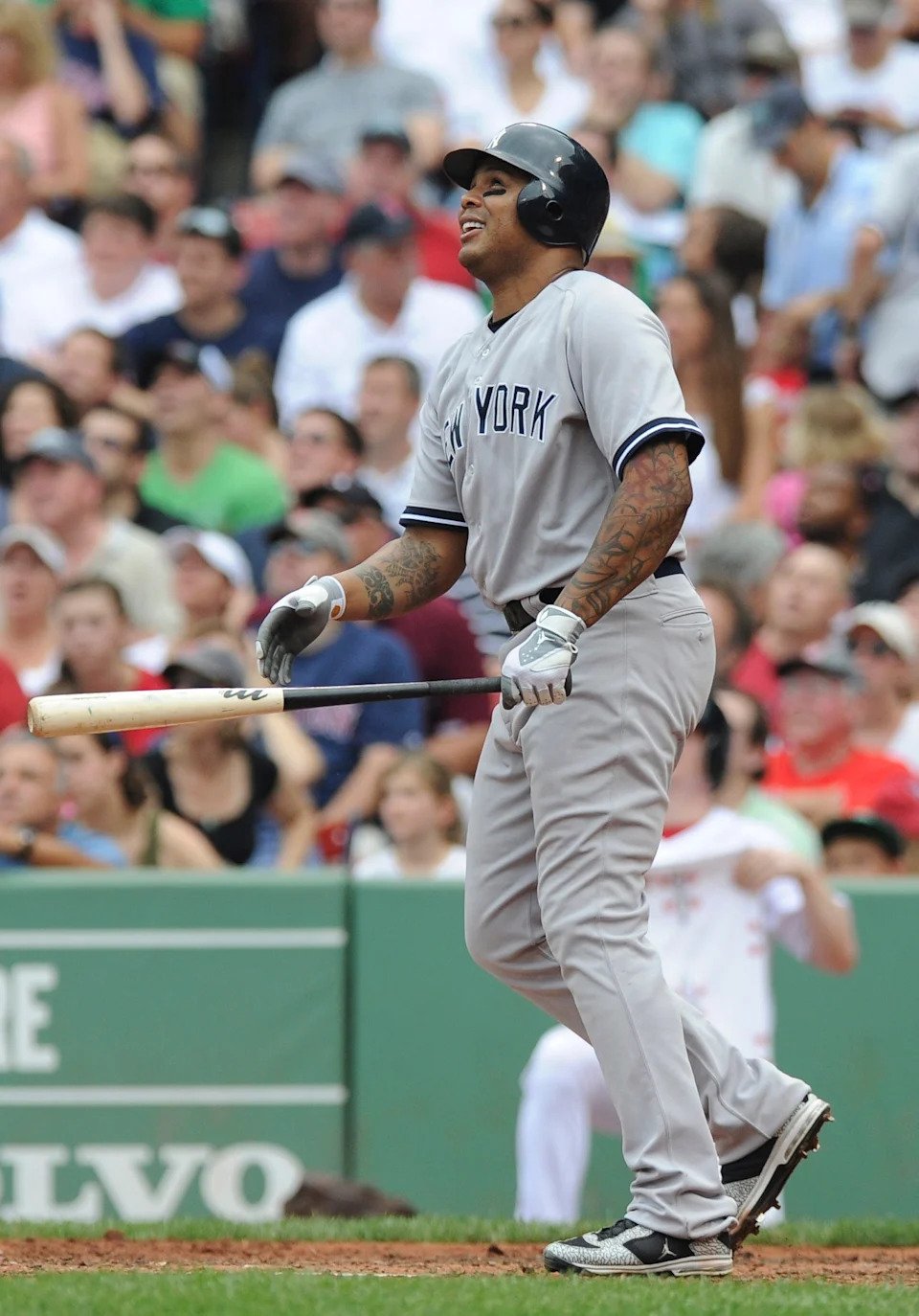 Andruw Jones hits a home run during the fourth inning against the Boston Red Sox at Fenway Park on July 7, 2012. Jones was with the Yankees for two years hitting 27 home runs.