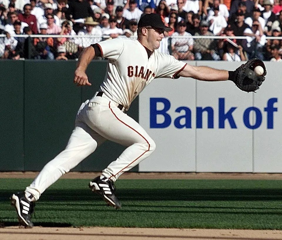Winner of the 2000 National League’s Most Valuable Player San Francisco Giants second baseman Jeff Kent is shown in this Oct. 4, 2000, file photo playing a ground ball against the New York Mets in San Francisco. Kent became the first second baseman in 16 years to capture baseball’s most coveted award presented by the Baseball Writers Association of America.