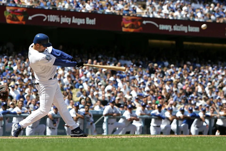 Los Angeles Dodgers pinch hitter Jeff Kent bats during 12-4 victory over the San Diego Padres at Dodger Stadium on Sept. 24, 2008. Kent retire from baseball in 2009.