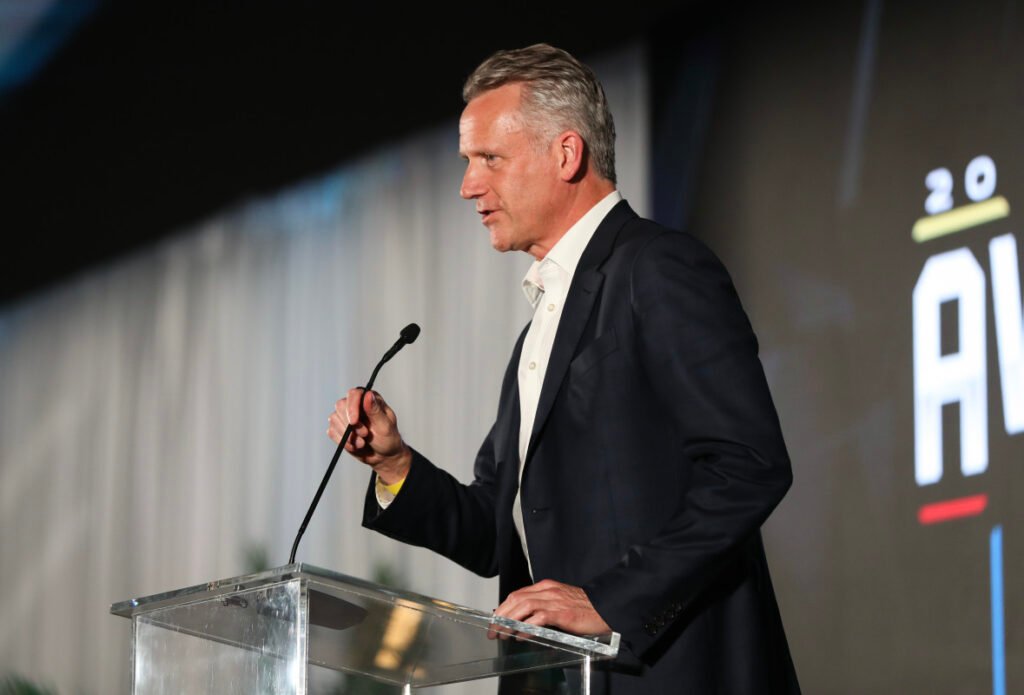 Feb 12, 2025; Daytona Beach, Florida, USA; NASCAR president Steve Phelps during Daytona 500 media day at Daytona International Speedway. Mandatory Credit: Mark J. Rebilas-Imagn ImagesMark J. Rebilas-Imagn Images
