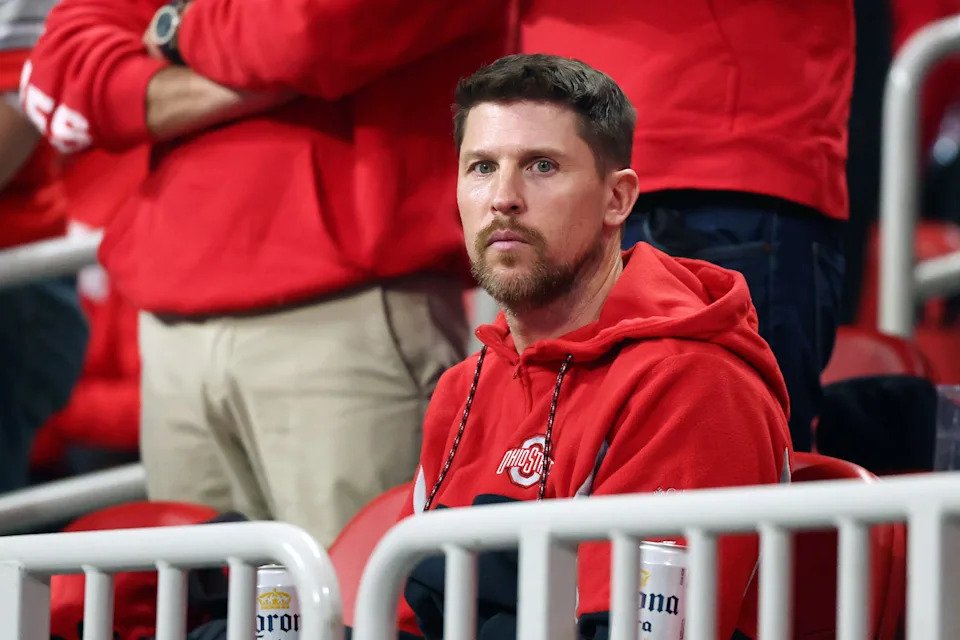 Jan 20, 2025; Atlanta, GA, USA; Denny Hamlin looks on before the CFP National Championship college football game at Mercedes-Benz Stadium. Mandatory Credit: Mark J. Rebilas-Imagn Images