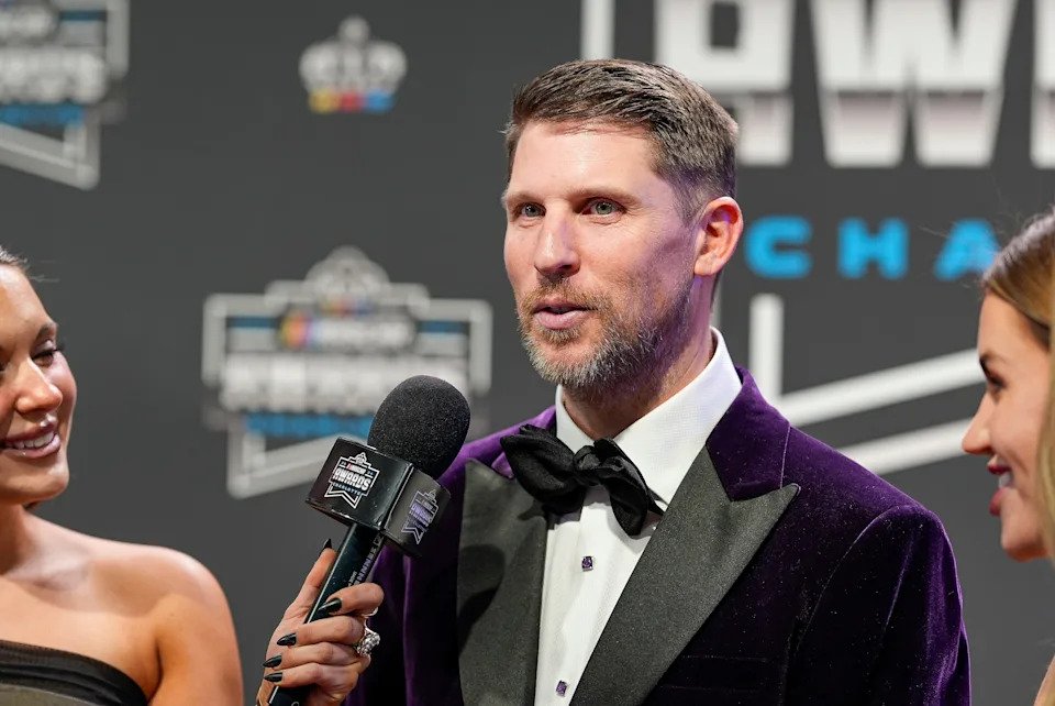 Nov 22, 2024; Charlotte, NC, USA; NASCAR Cup Series driver Denny Hamlin (11) during the NASCAR Awards Banquet at Charlotte Convention Center. Mandatory Credit: Jim Dedmon-Imagn Images