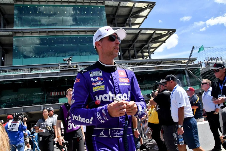 NASCAR Cup Series driver Denny Hamlin (11) makes his way onto the track Sunday, Aug. 13, 2023, ahead of the Verizon 200 at the Brickyard at Indianapolis Motor Speedway.