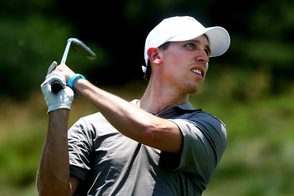 June 6, 2011 – Denny Hamlin watches his second shot on the par four second hole at the FESJC Danny Thomas Pro Am at TPC Southwind. He made par on the hole.