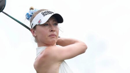 “Just day one out of four — a lot can happen,” Korda said after her best opening round in a major since a 64 in the 2022 Evian Championship. “So happy to be in this position and hoping to move forward.”