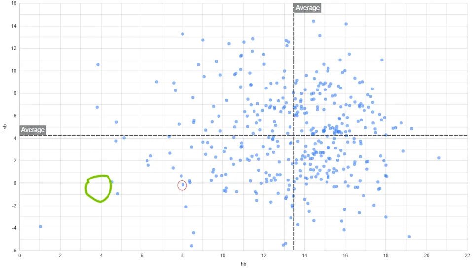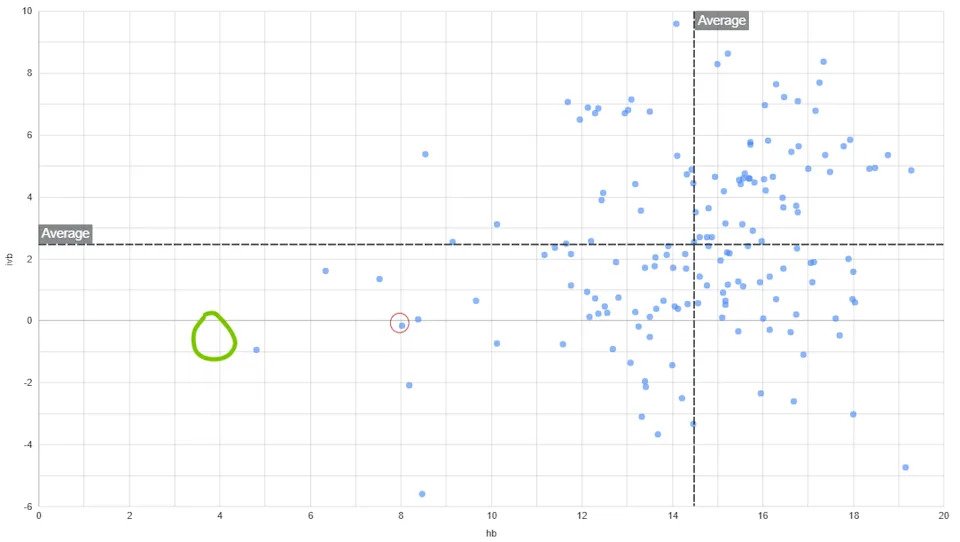 But that didn’t stop the Rays from helping Woodford tinker with his changeup; he’s leaning into his strengths and making it an even weirder pitch by cutting off even more horizontal break. The graphs of offspeed (changeups and splitters) below show just how extreme that shape is. The red circle is his shape sat last season when it was already an outlier, and the green circle is an approximate range of where it’s sitting now in Spring Training: