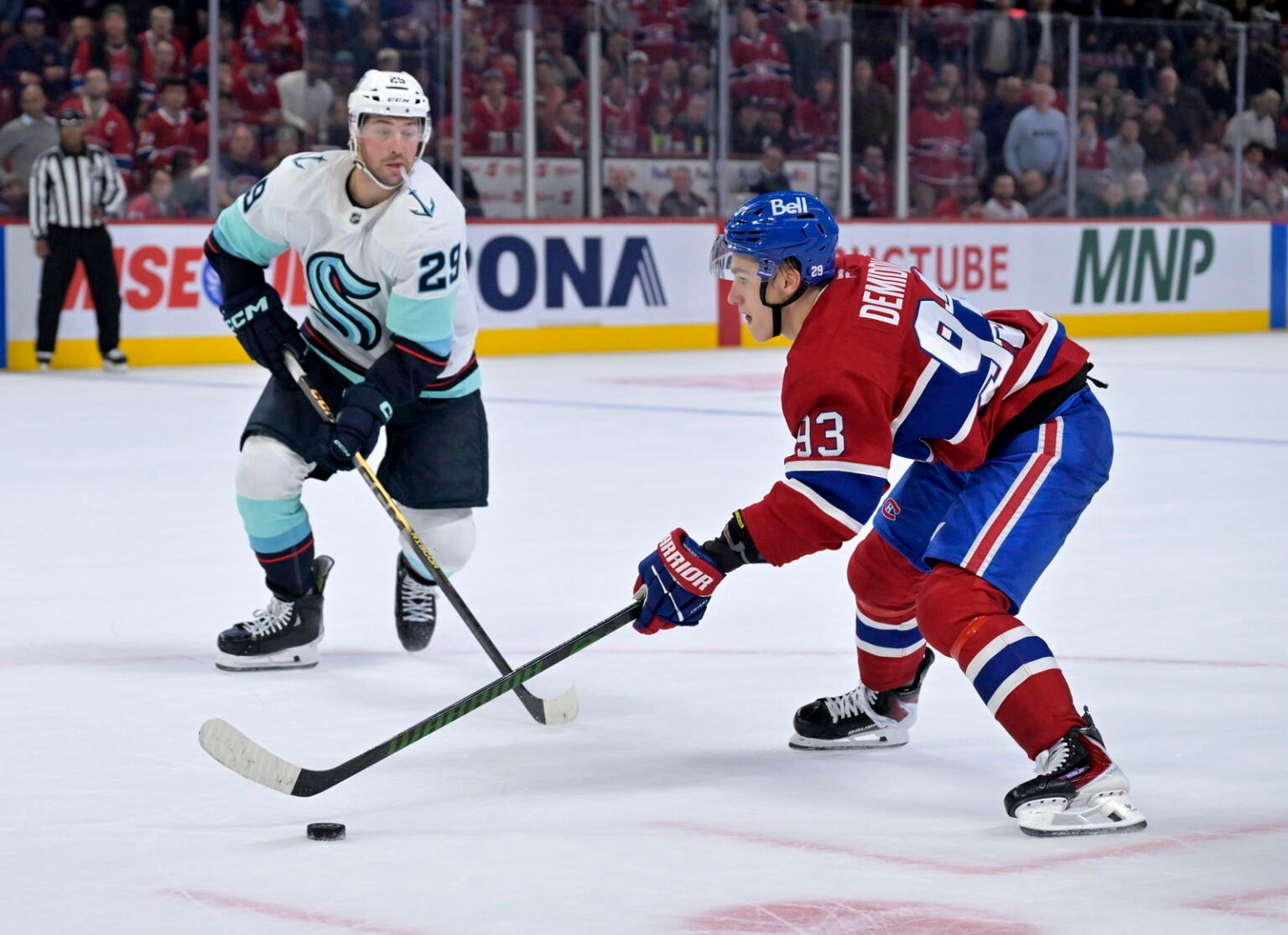 The players were then all introduced on the ice to the song of their own choosing, but the crowd was so vocal that it was almost impossible to recognize the tunes. Putting the title of each song would have been a nice touch, but that’s my sole criticism. Otherwise, the Canadiens pulled off another grand ceremony and it was the perfect prelude to the game against the Seattle Kraken.