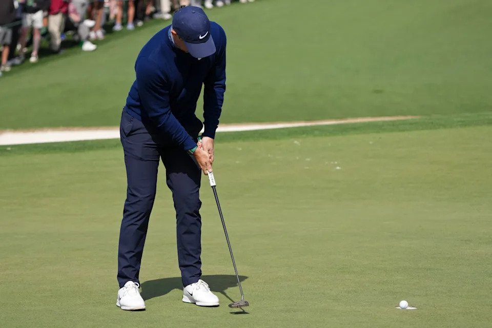 Rory McIlroy putts on the second green during the first round of the Masters Tournament at Augusta National Golf Club.