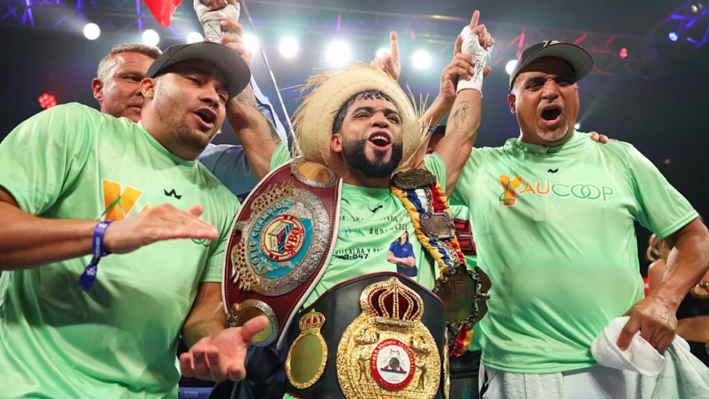 Collazo retained his WBA and WBO minimumweight titles in the Golden Boy/DAZN main event from the Fantasy Springs Casino in Indio, California, after the chief second in Vayson’s corner jumped onto the ring apron in Round 7 to signal Taylor to stop the bout.