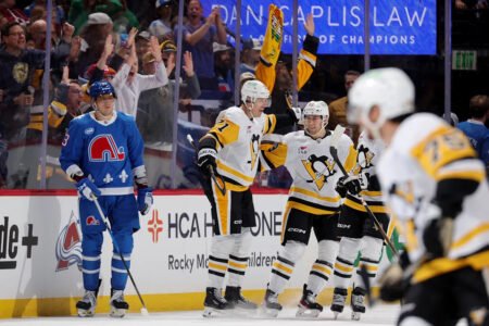 It was a classic Evgeni Malkin night, as only he could do it. Malkin took an offensive zone penalty on his first shift, only to score that beauty with a spinning backhander almost immediately after getting out of the penalty box. That set the tone for the game, even though Nathan MacKinnon quickly answered that first goal, the Pens sprung Anthony Mantha for his breakaway goal as a response to the response. From there, the Pens were off to the races, scoring early and often within the first couple of periods. We’ll have much more tomorrow in response to a massive statement game for Pittsburgh. They’re up to 2-1-1 during a very daunting and challenging road trip, playing as dangerous as ever, and all without Sidney Crosby.