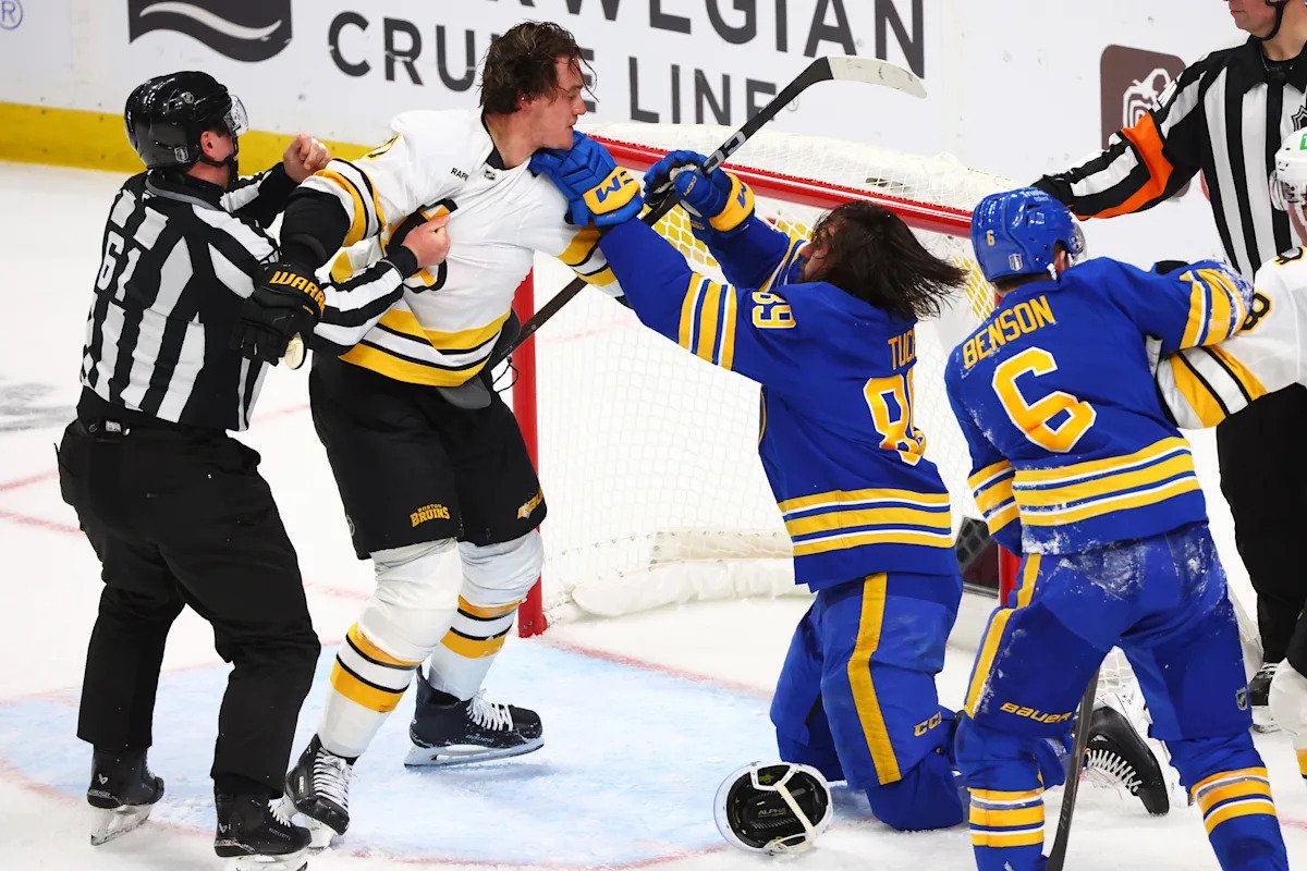 The Sabres came into the series offended by a comment that Bruins coach Marco Sturm made about being the bigger and stronger team. Neither team backed down on Tuesday night, when they had several fights and a combined 94 penalty minutes.