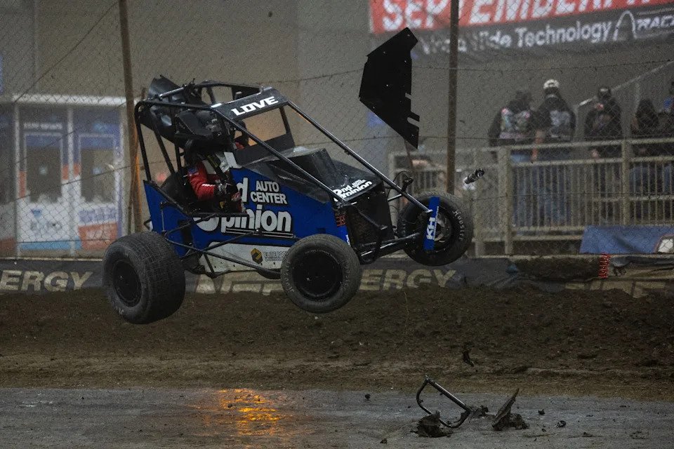 For example, Gavin Miller went for a violent tumble racing under Grant for second and collected Steven Snyder Jr. in the process. Miller would need to be transported to a nearby medical facility for further evaluation after the race. The below crash eliminated Snyder from contention as Chase McDermand couldn’t put the car back together afterwards but was otherwise healthy.