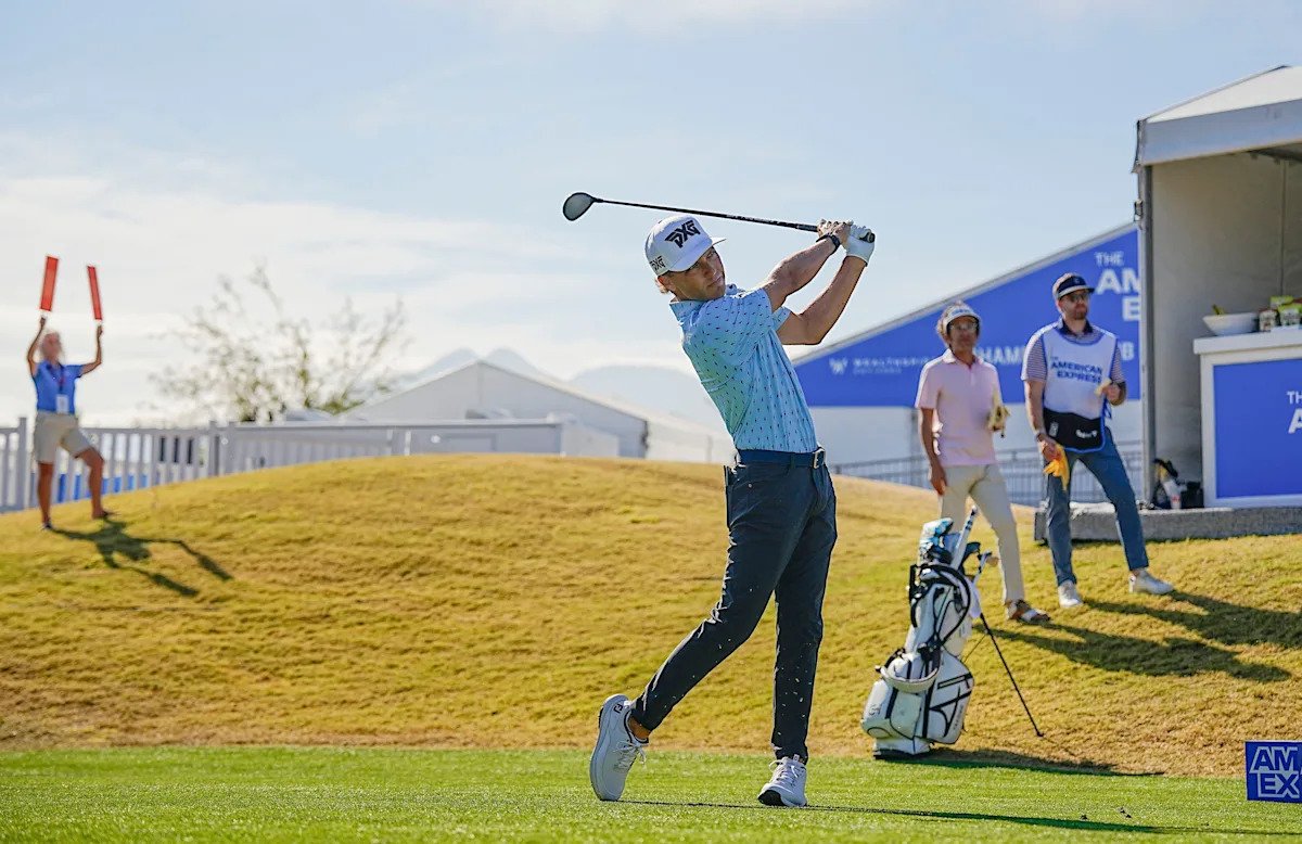 Eric Cole tees off on the 10th hole of the Pete Dye Stadium Course during the second round of the American Express at PGA West in La Quinta, January 23, 2026.