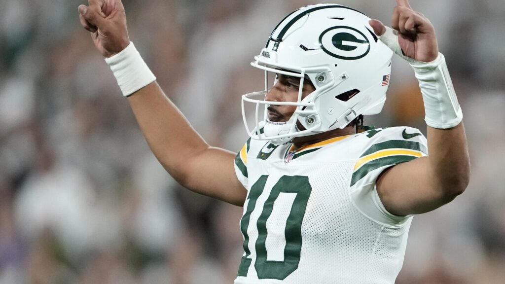 The Packers got a rushing touchdown from Josh Jacobs, the 11th consecutive game he has had at least one, and two passing touchdowns from Jordan Love. Romeo Doubs caught a 5-yard touchdown and Tucker Kraft an 8-yarder.