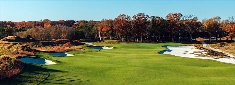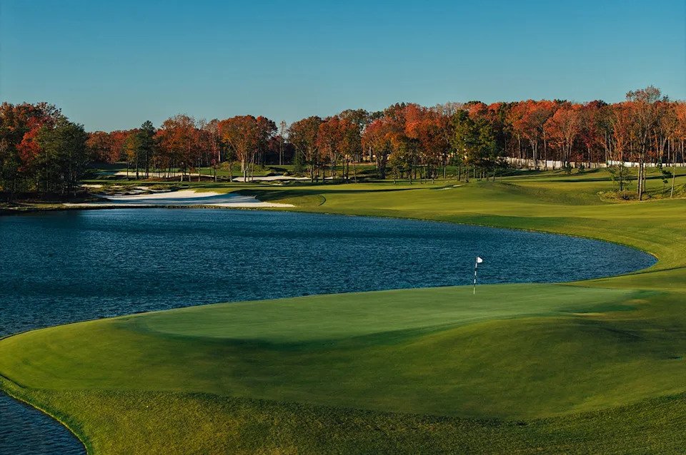 The course plays across 280 acres and can be stretched past 7,500 yards with a par of 72, featuring wide fairways that offer multiple routes toward the greens. Water is in play on six holes, and the bold greens are surrounded by short-cut grass, rewarding creativity while presenting plenty of short-game options. The layout was designed with match play in mind, asking plenty of risk-reward questions of players.