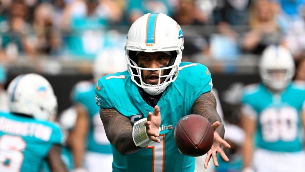 The thumb injury is on his left hand. Which is a problem, because he’s left-handed. Kelly reports that the hip injury could sideline Tagovailoa for a couple of days. (Again, he was officially limited on Wednesday.)