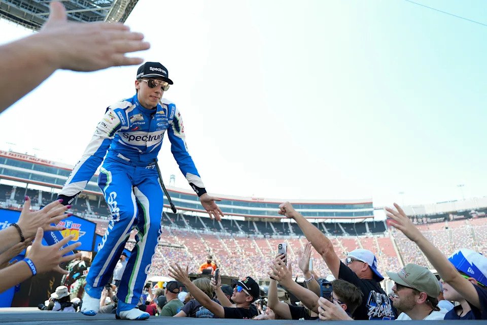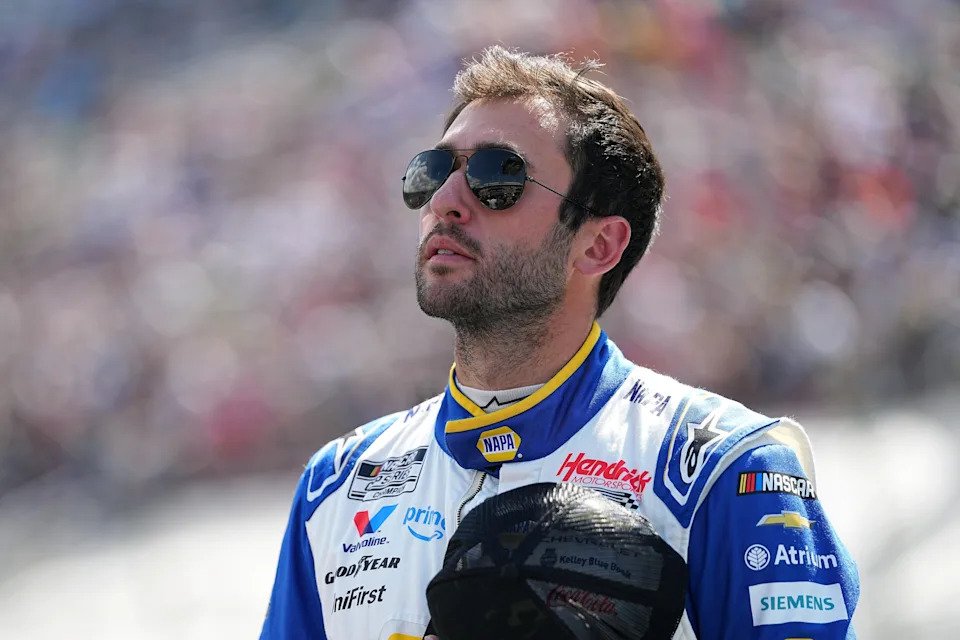 BRISTOL, TENNESSEE – APRIL 12: Chase Elliott, driver of the #9 NAPA Auto Parts Chevrolet, greets fans as he walks onstage during driver intros prior to the NASCAR Cup Series Food City 500 at Bristol Motor Speedway on April 12, 2026 in Bristol, Tennessee. (Photo by Matt Kelley/Getty Images)